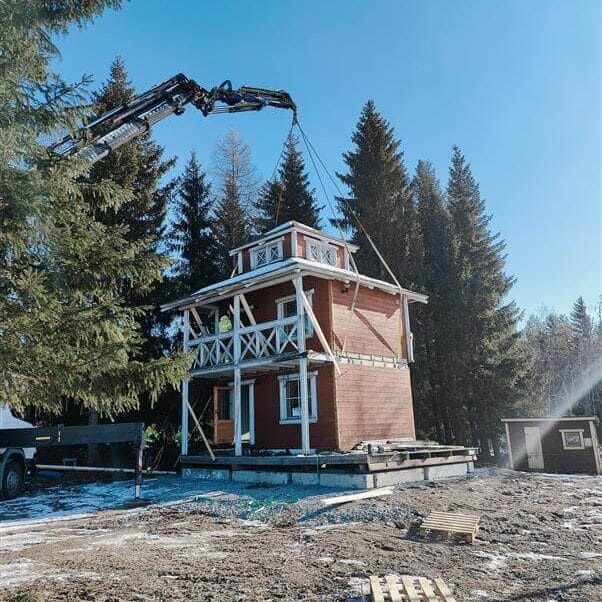 Kaksikerroksinen entinen toimistorakennus siirtyi kahdessa päivässä mökiksi upealle paikalle merenrannalle. Siirto onnistu näppärästi yhdessä yhteistyökumppaneiden, Maanrakennus J Päkkilä Oy:n, Sampo Rakennus Oy:n ja Tmi N. Suomelan kanssa.